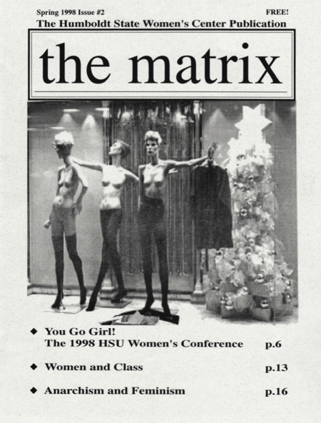 The Matrix: The Humboldt State Women’s Center Publication, Issue 1, Arcata, CA, Spring 1998, “Herstory of the Bra” essay pgs 8-9 (as Tanja Notkoff), “Life, Death, and Love: (P)Rose of the Titanic” essay pgs 16-17 (as Tanja Notkoff)